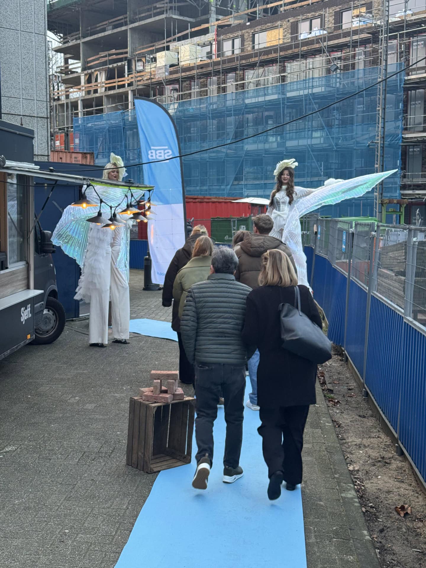Met een glas bubbels in de hand proostten de nieuwe buren op een succesvol nieuw (bouw)jaar. Ondertussen verzorgde Sjeff heerlijke hapjes en frisse drankjes. Met een beetje geluk ging je bovendien naar huis met een persoonlijk compliment van de Complimentenmakers.