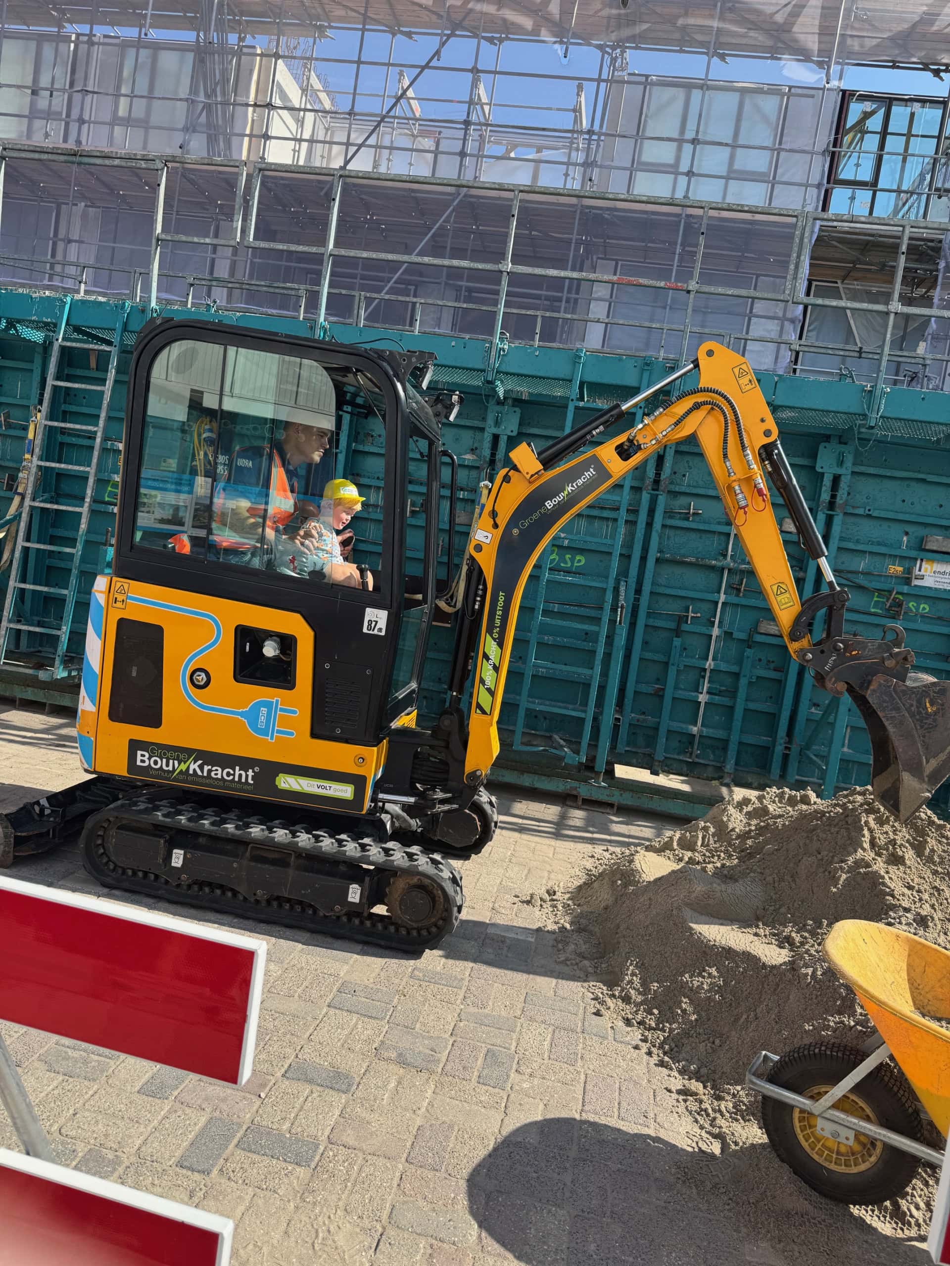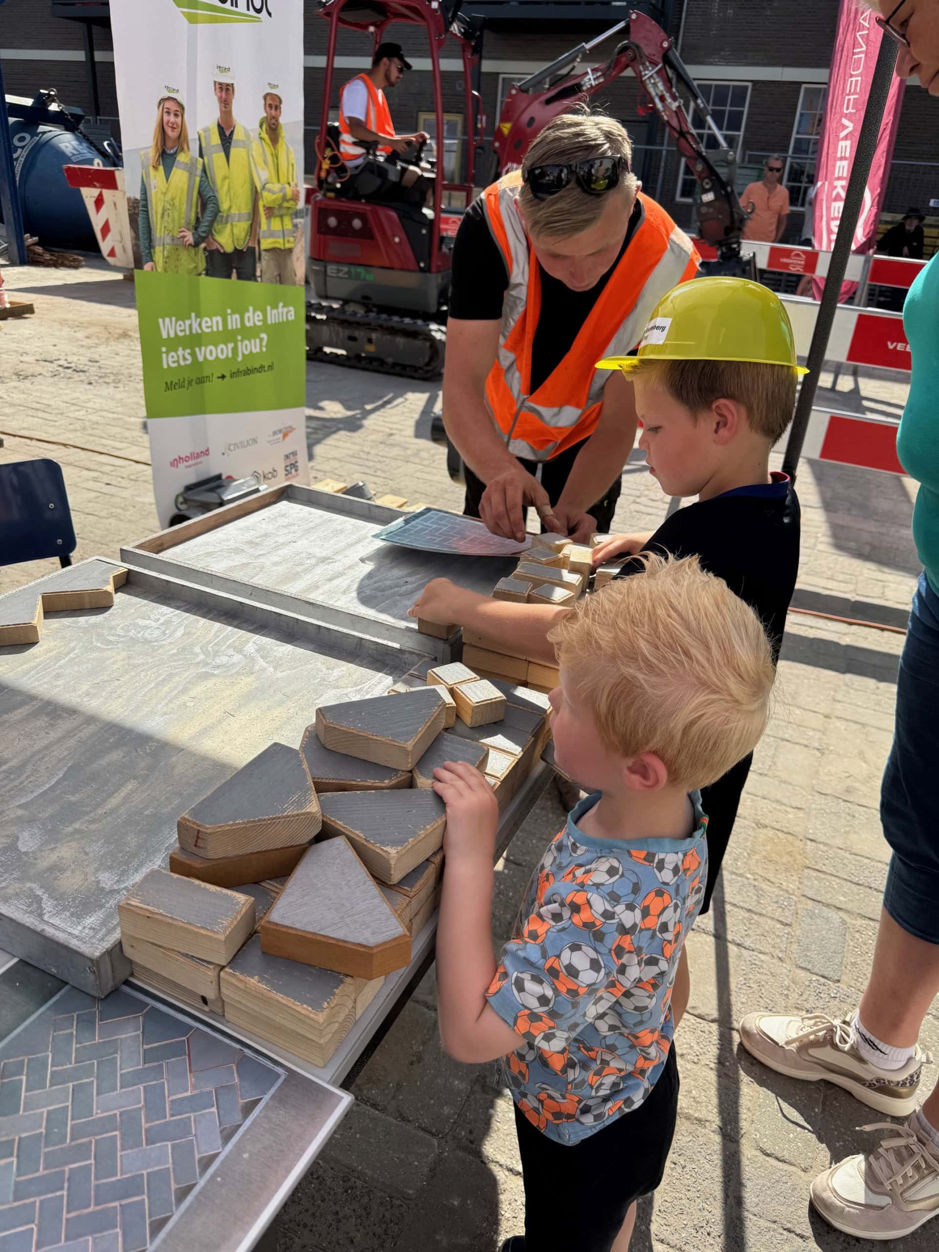 Op het ontvangstplein stonden Schadenberg Plaisier en Gebr. Van der Veekens klaar met interactieve onderdelen, waaronder een toelichting over meterkasten, een workshop bestrating en een elektrisch kraantje waarmee bezoekers zelf een kruiwagen met zand konden vullen. Vooral het jonge publiek genoot zichtbaar van deze doe-activiteiten.