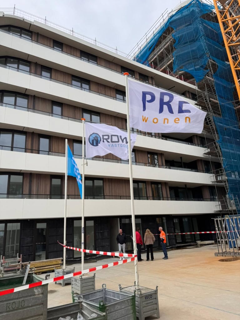 Woensdag vierden we het bereiken van het hoogste punt van project de Duinwachter. Toekomstige bewoners en betrokken partijen waren aanwezig om dit feestelijke moment samen te beleven. Directeur Dobias Bloem en opdrachtgever Otto Wierenga van ROW Vastgoed spraken lovende woorden over de voortgang van het project en de prettige samenwerking met SBB Ontwikkelen en Bouwen.